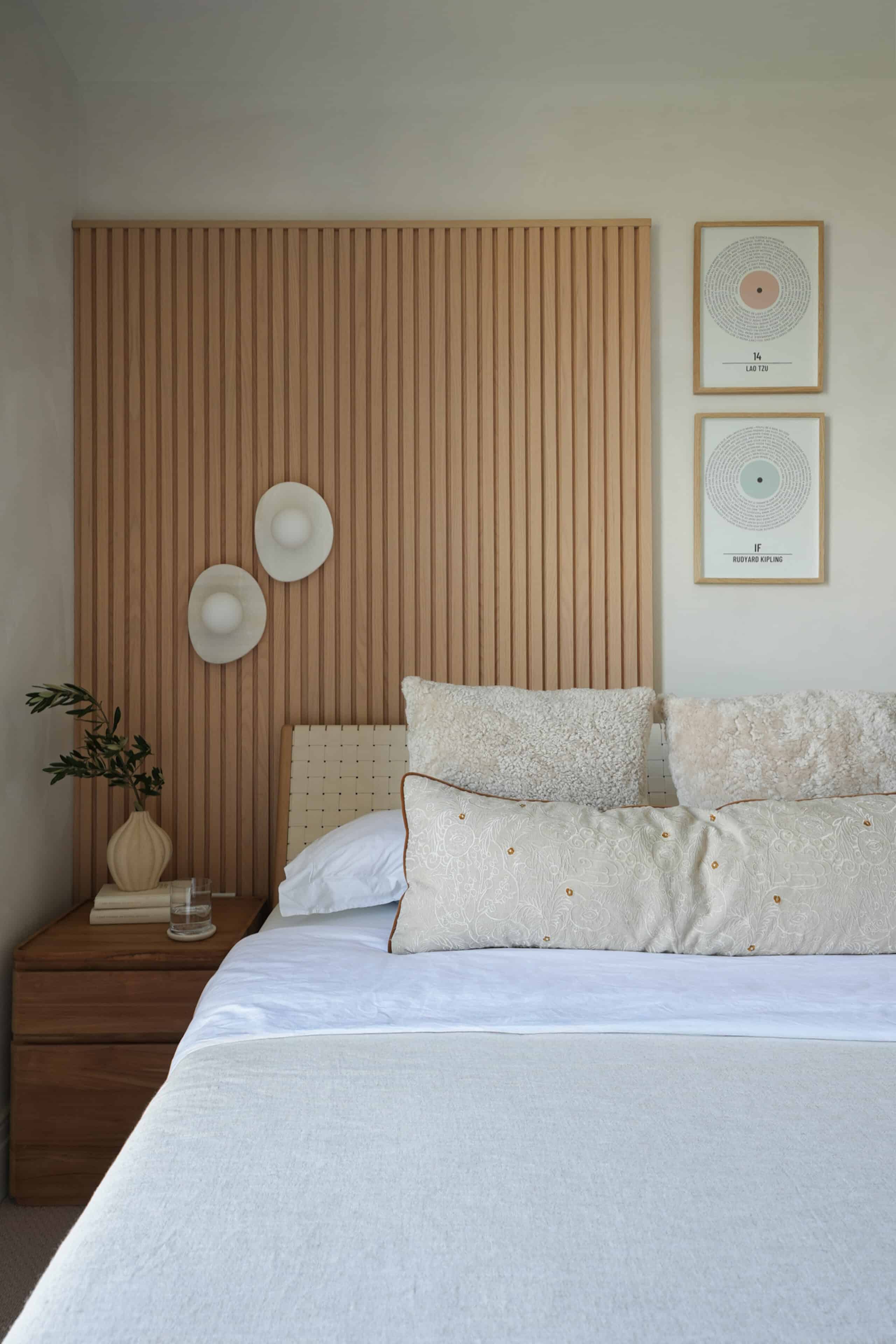The second bedroom was more playful, and featured more pieces provided by Olson & Baker, including the Ethnicraft Nordic II Bedside Table which brought utility and elegance to the space, and was the perfect countertop for the Audo Copenhagen Reverse Table Lamp, drawing inspiration from geometric shapes, natural materials, and minimal yet practical design.